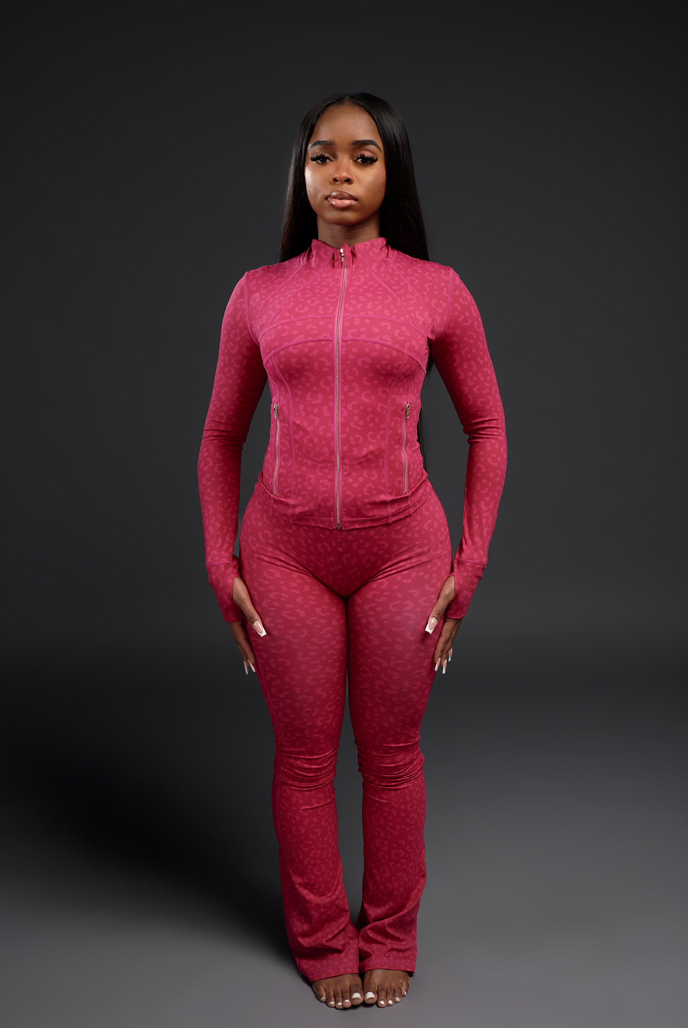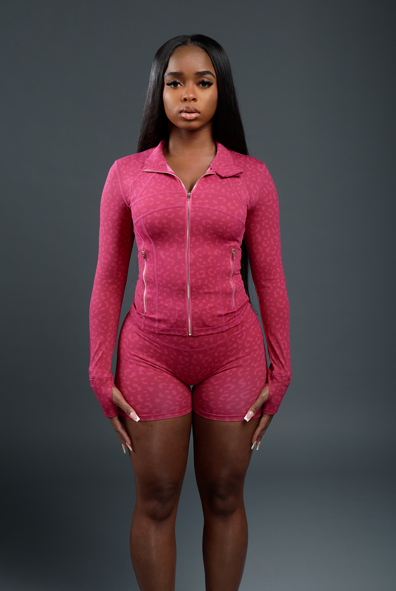I love her sets very flattering. I bought the pink & grey sets as well, it’s top tier ! It didn’t take long to ship . You def get what you pay for and it’s exactly like the picture . For the quality the price is nice . I really hope she gets fall colors ( orange, nude, etc ) I don’t have a picture of this set yet