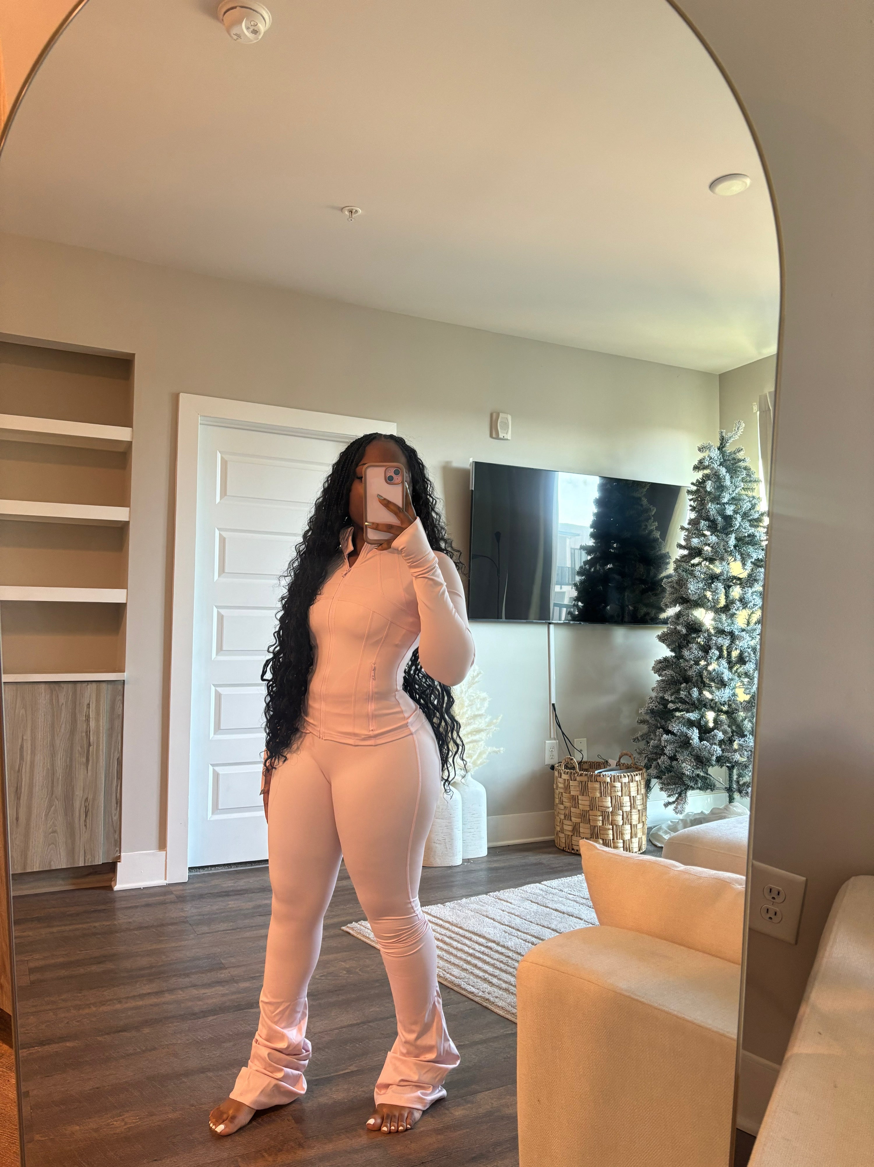 Lulu Shape Jacket & Flare Pants Set ( Baby Pink)