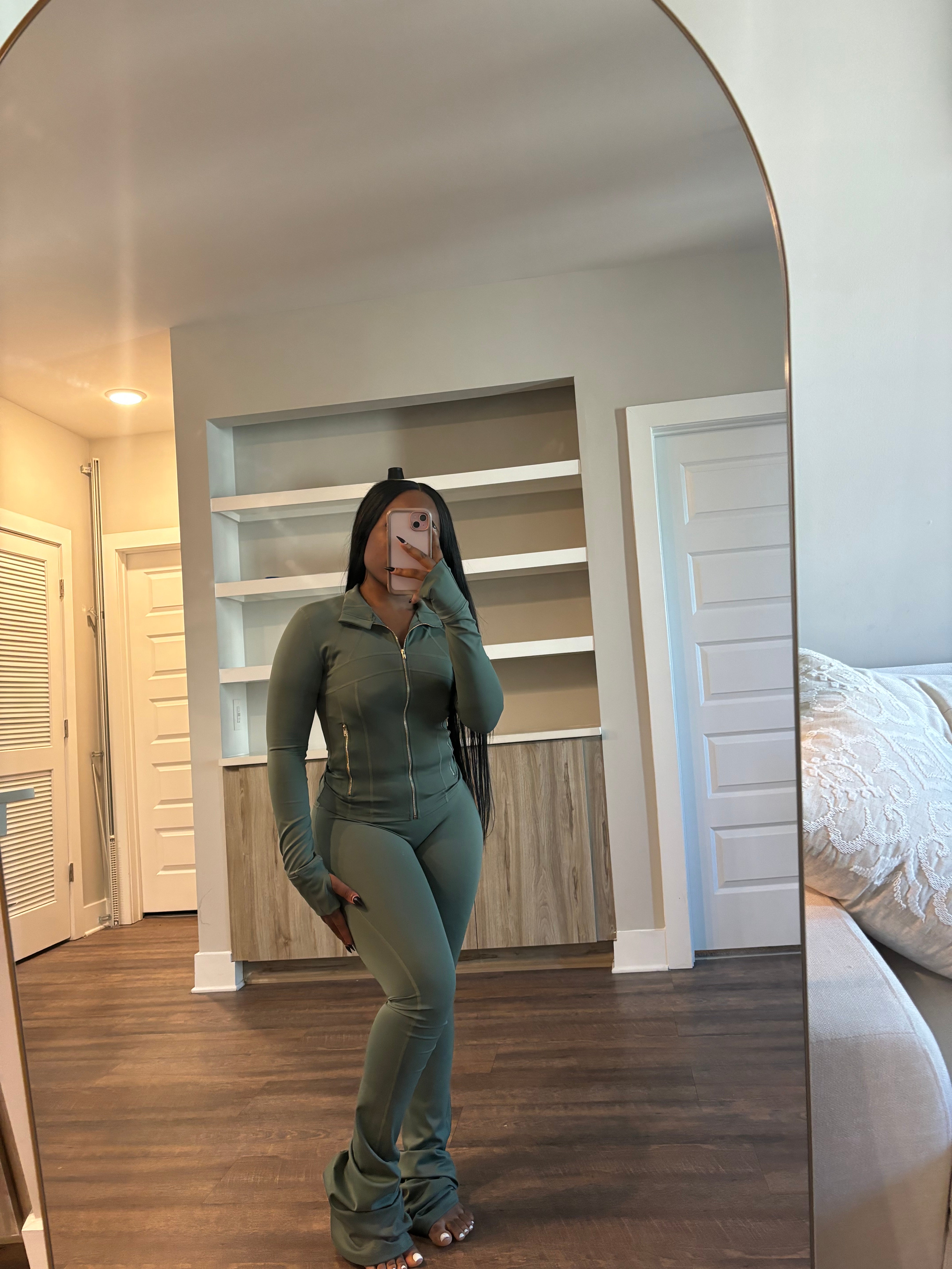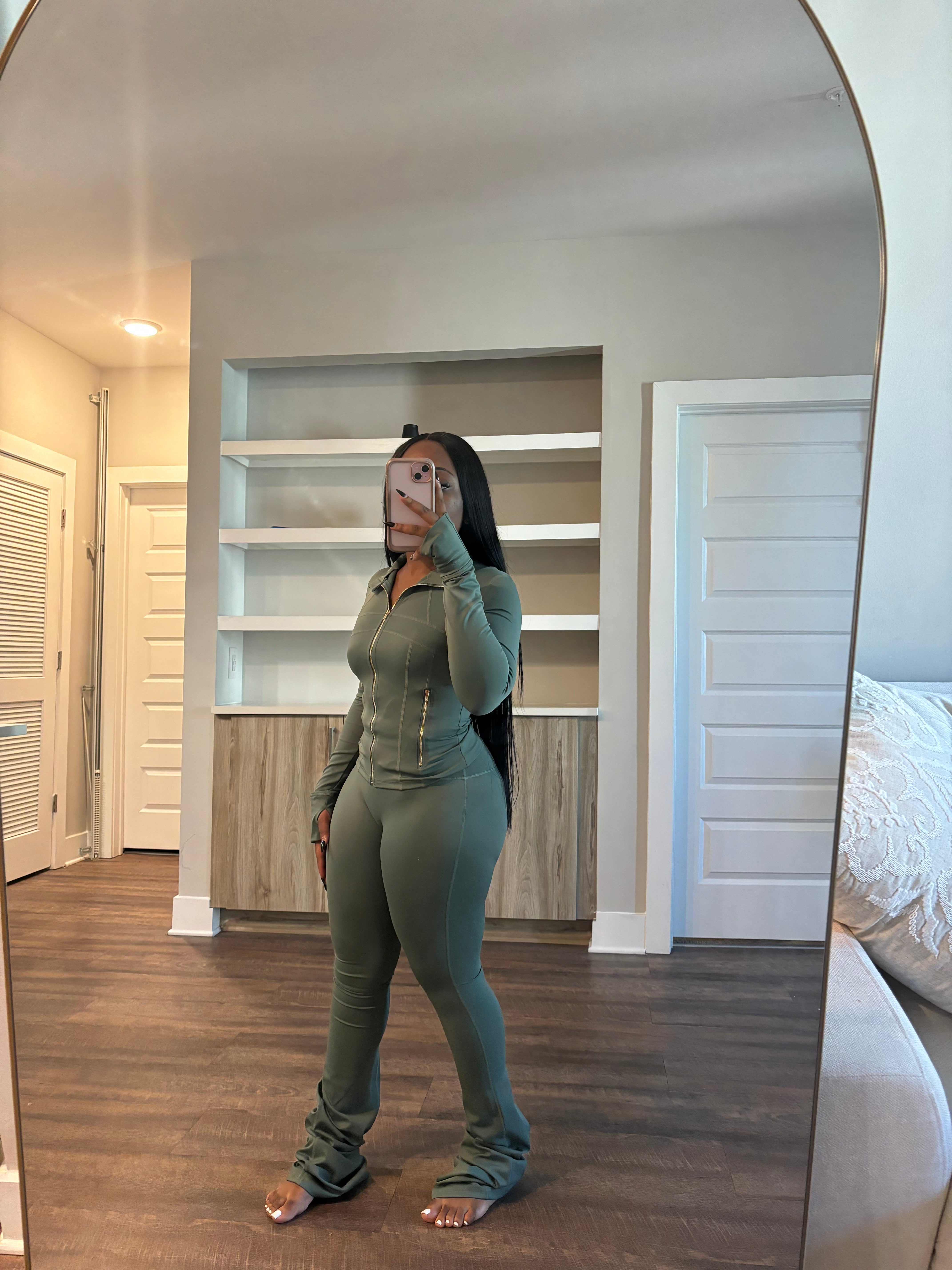 Shape Jacket & Flare Pants Set (Avocado Green)