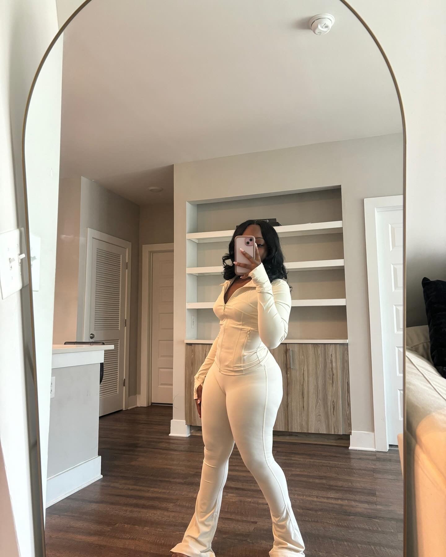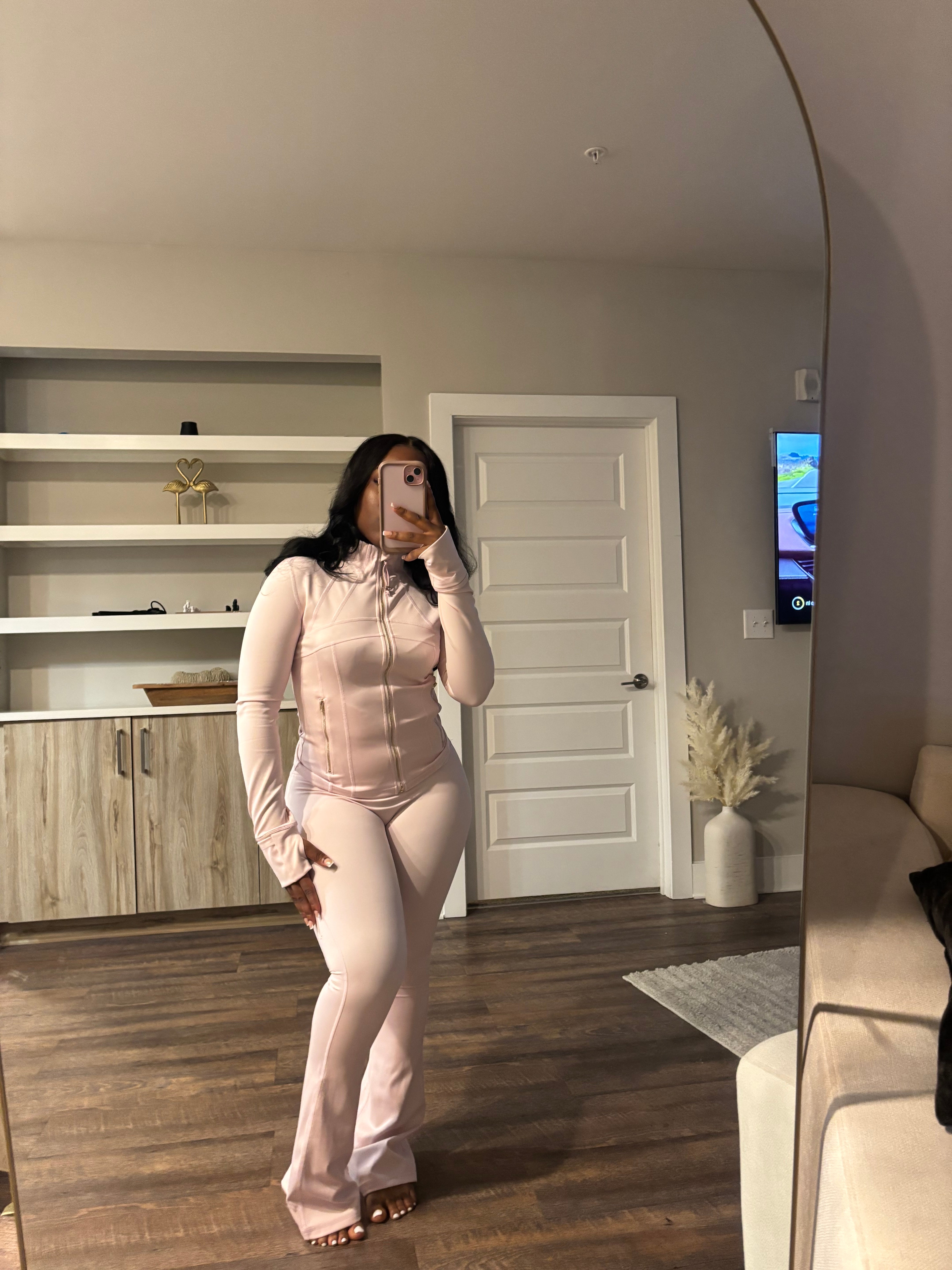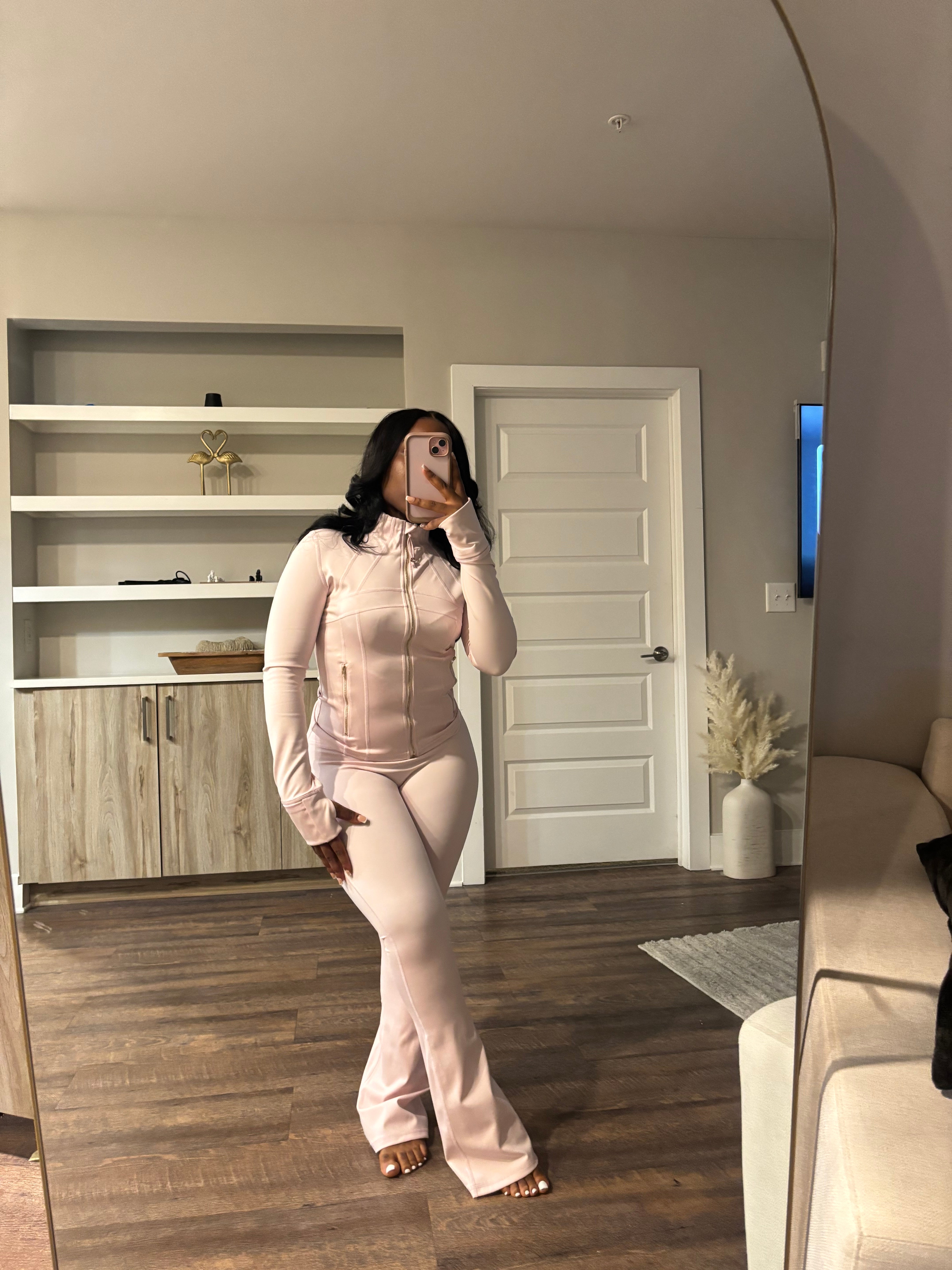 Shape Jacket & Flare Pants Set ( Baby Pink & Gold Zipper)