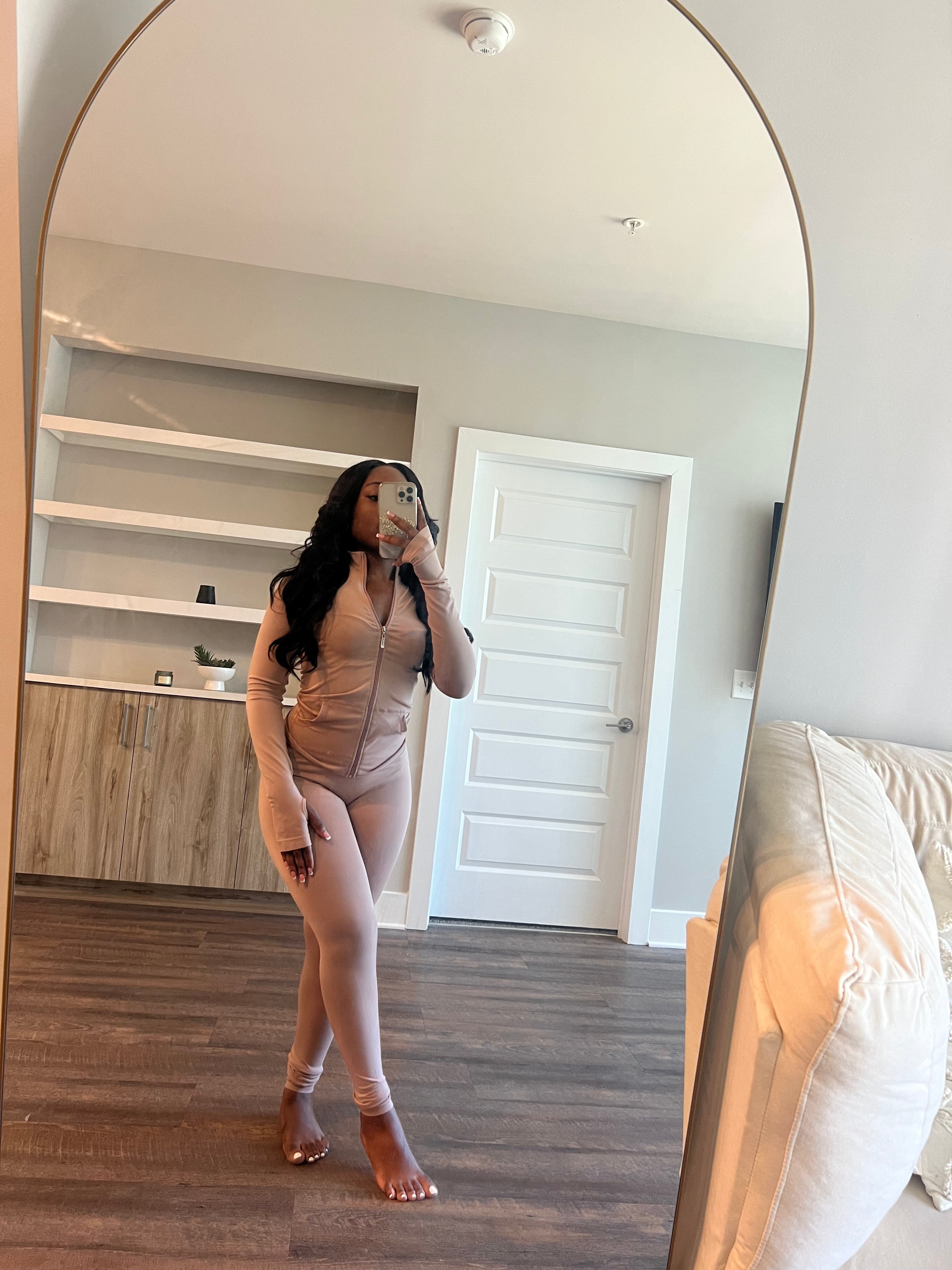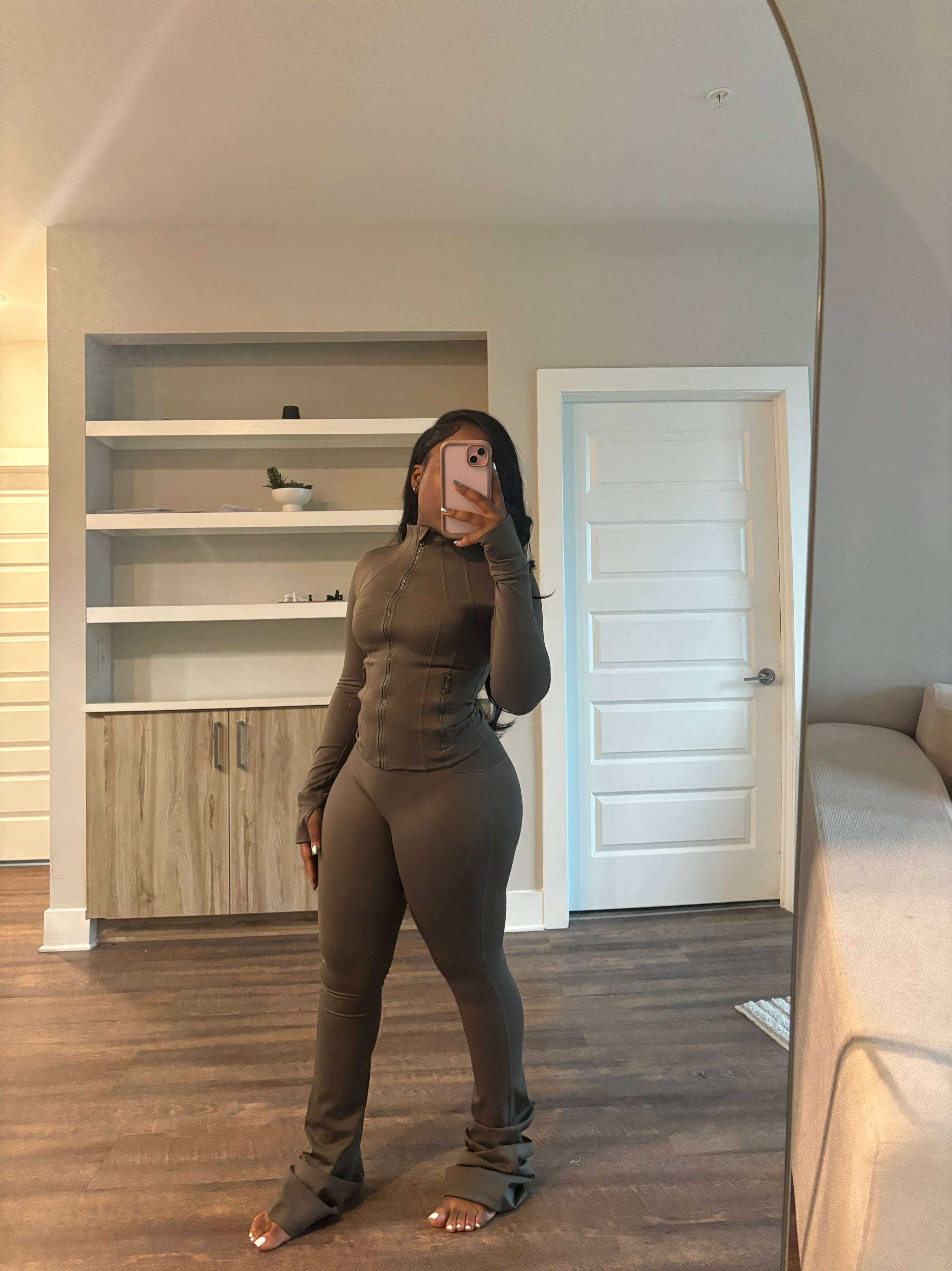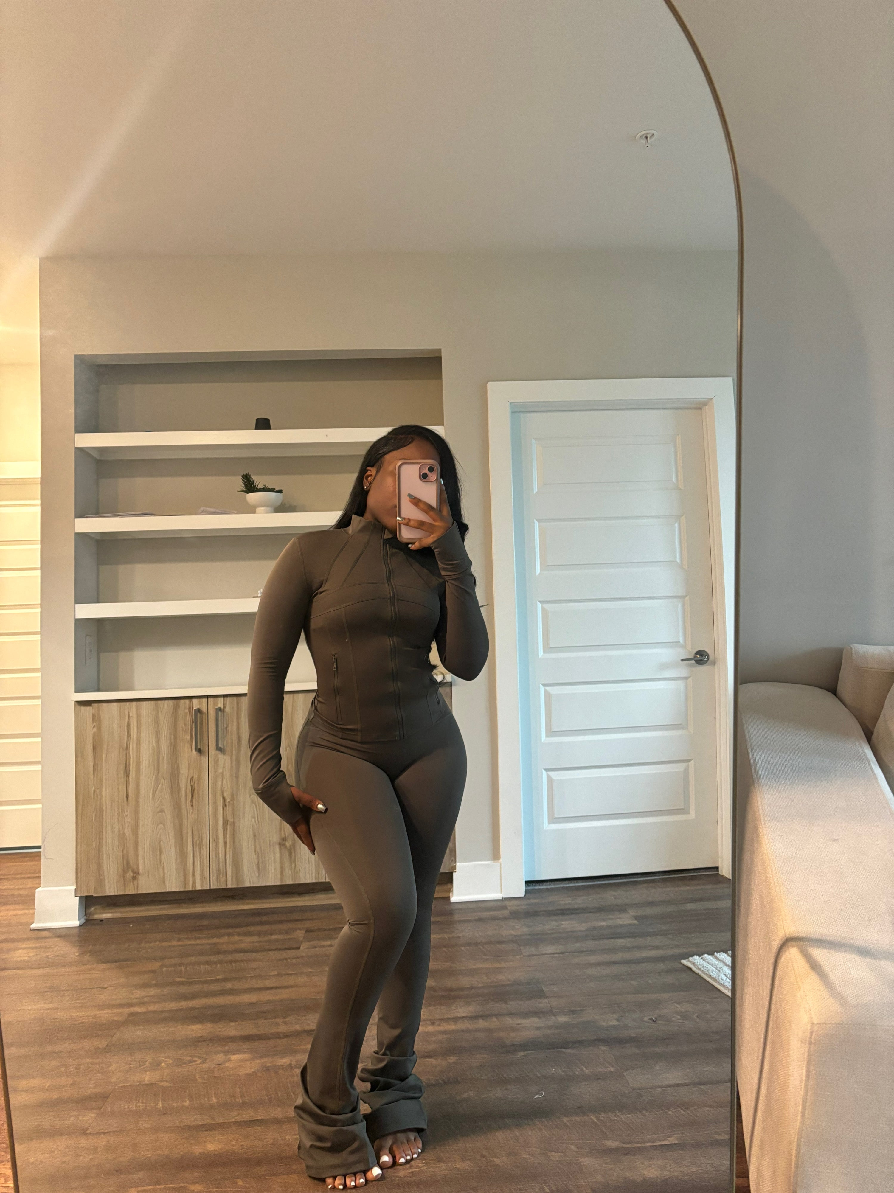 Shape Jacket & Flare Pants Set ( Baby Pink & Gold Zipper)