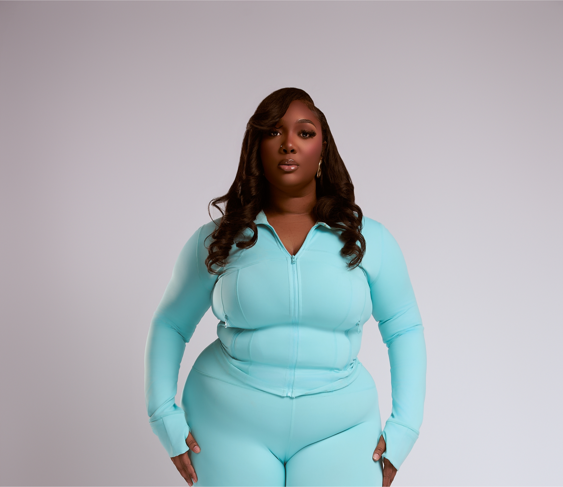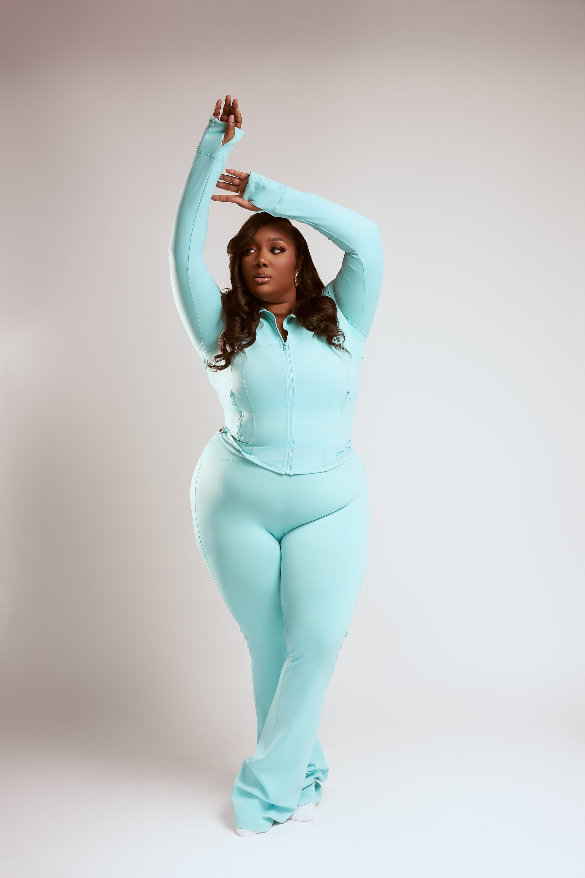 Shape Jacket & Shorts Set (Teal& Gold Zipper)