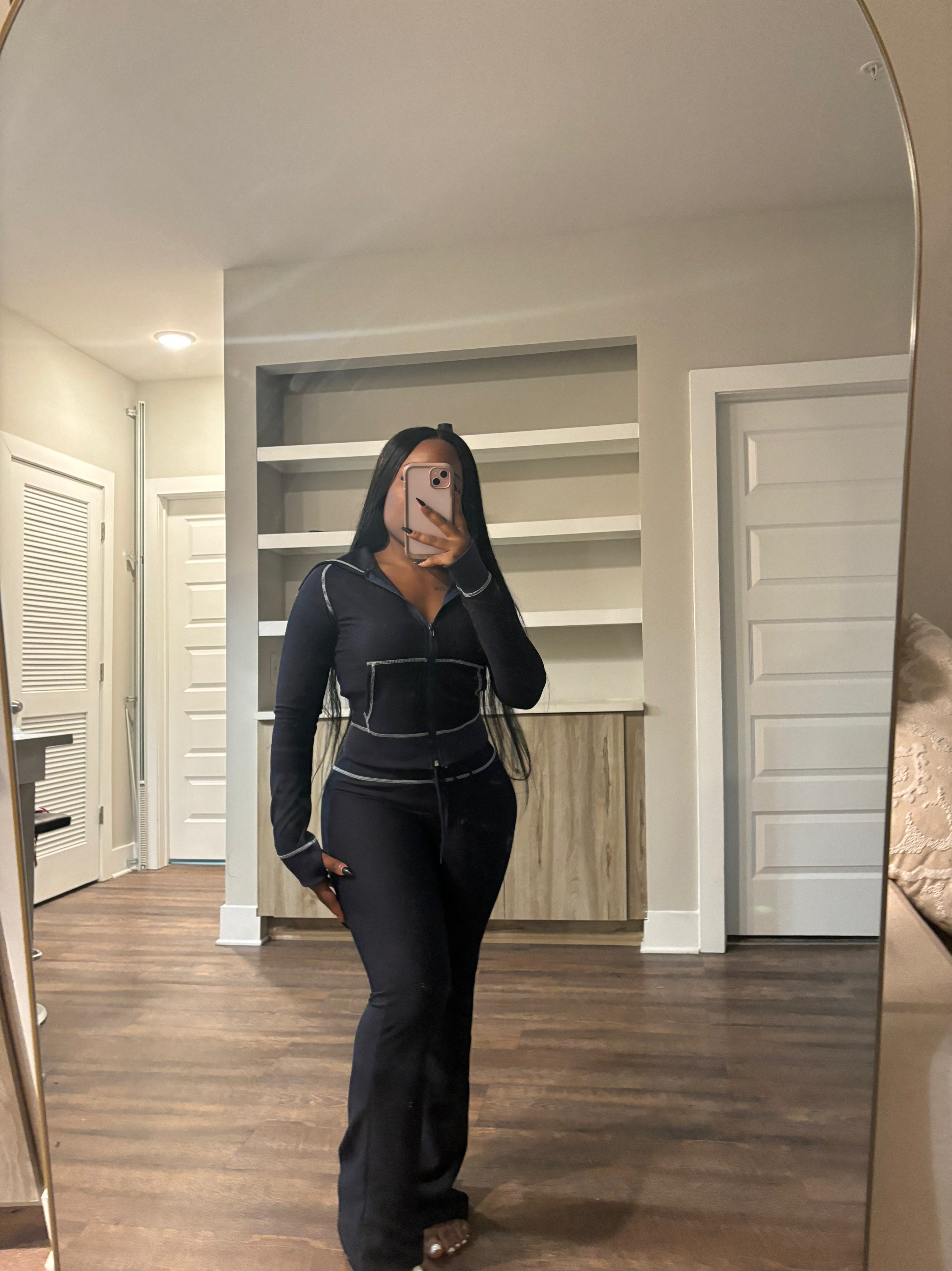 Shape Jacket & Flare Pants Set (Cobalt Blue & Gold Zipper)(FINAL SALE)