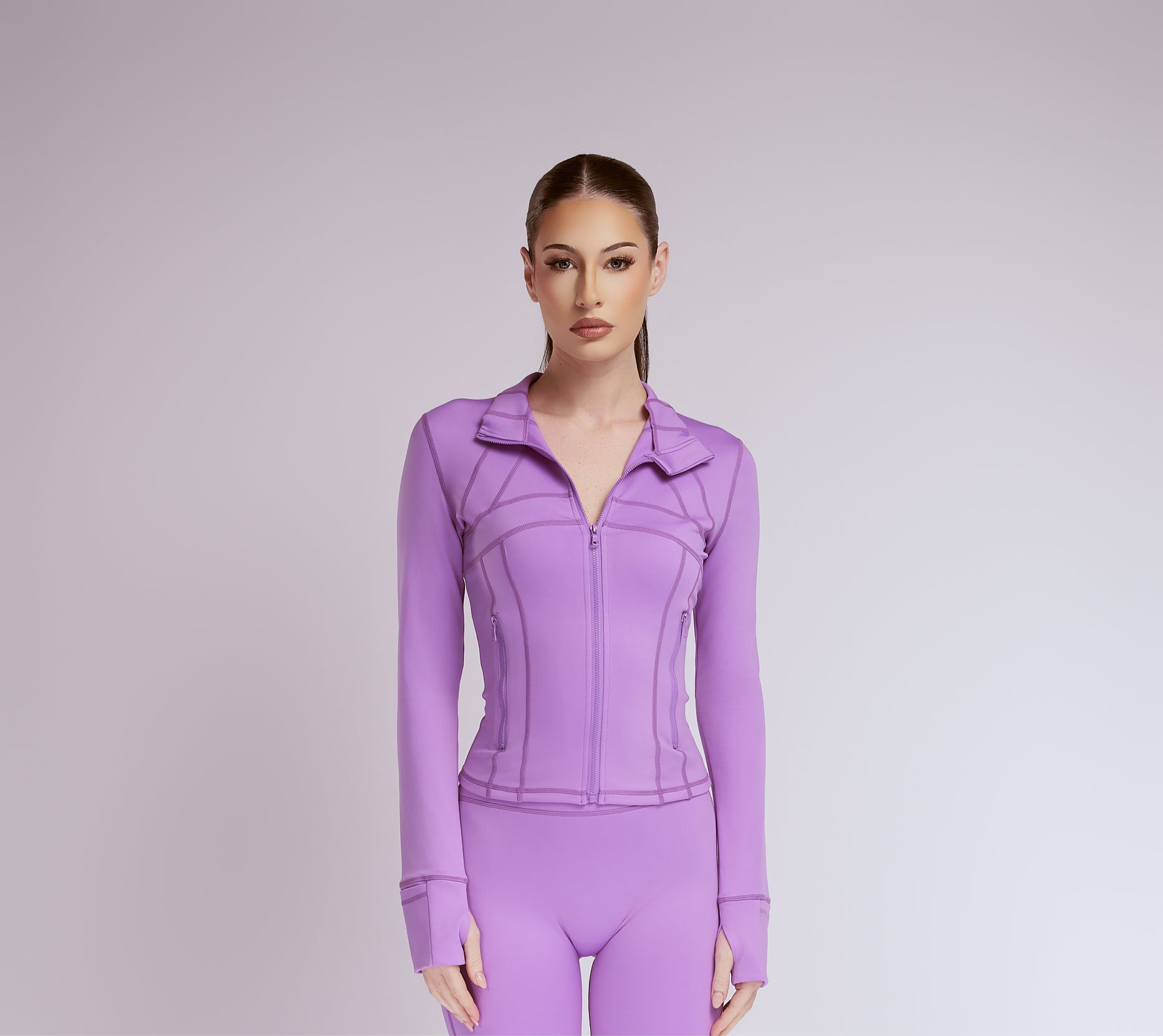 Shape Jacket & Flare Pants Set (Plum & Gold Zipper)(FINAL SALE)