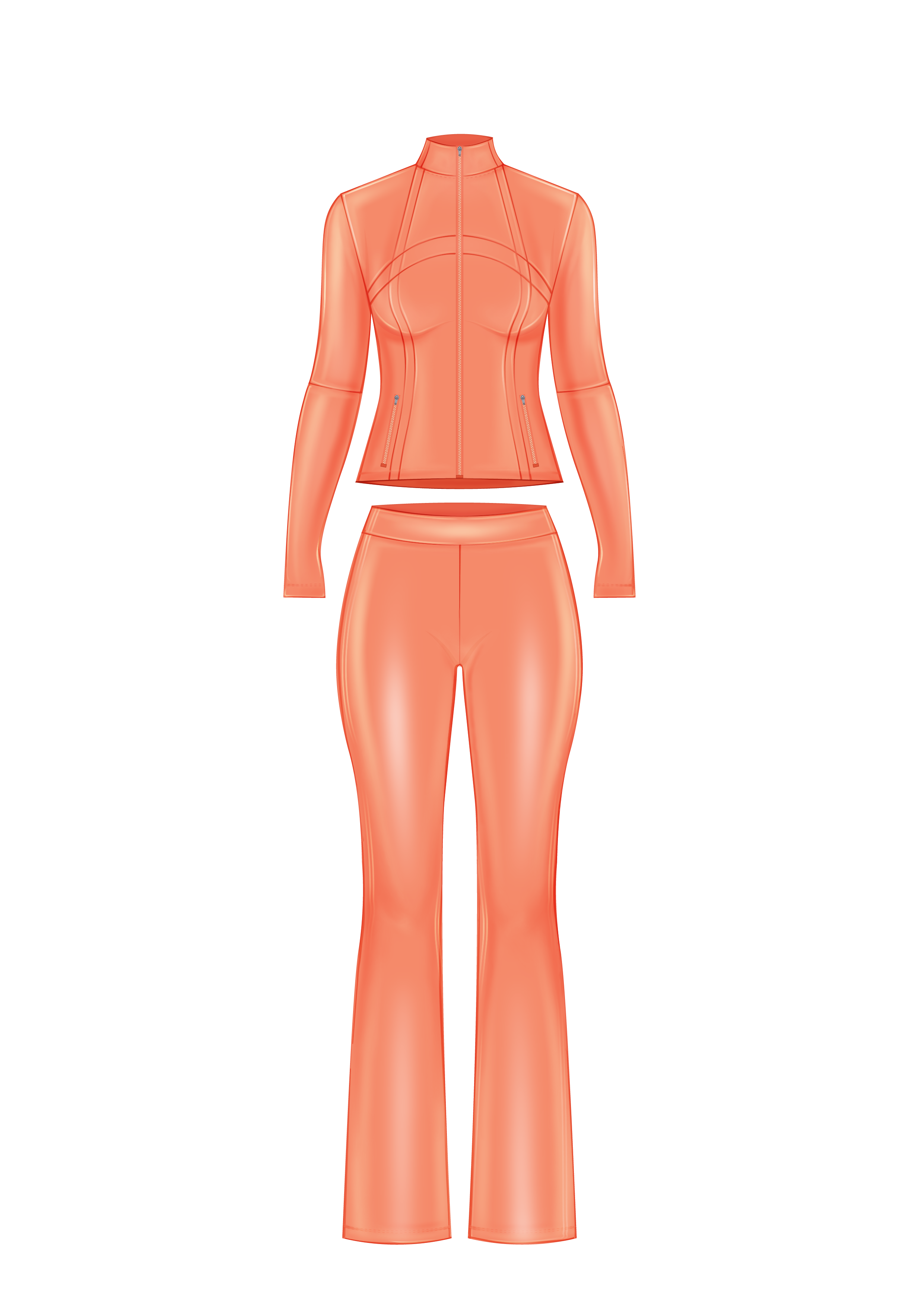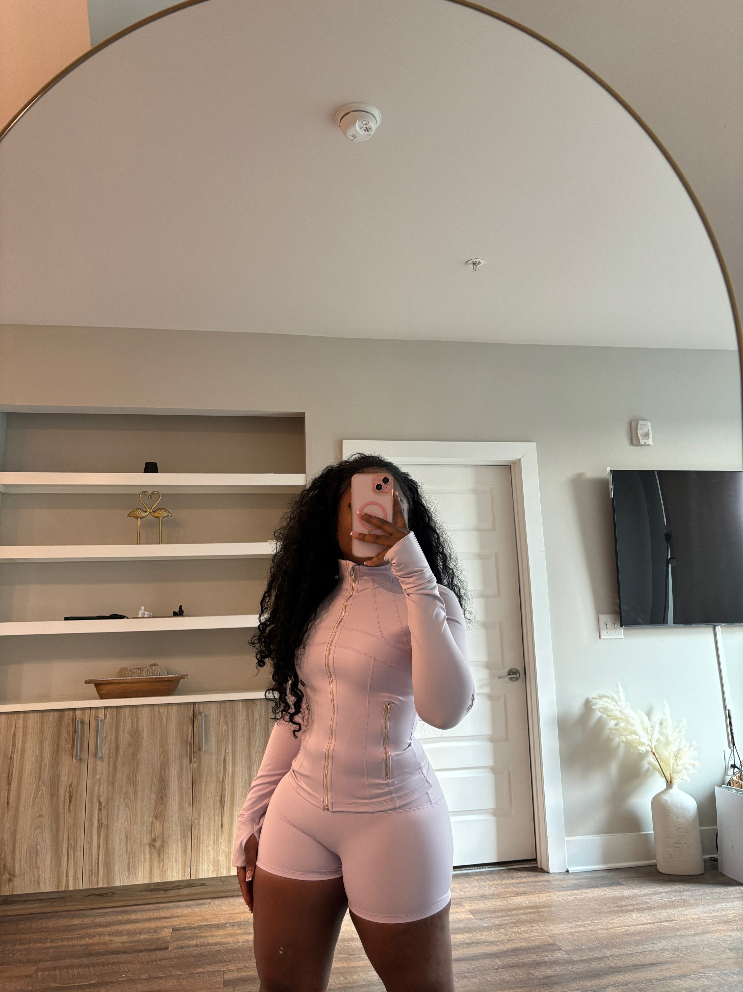 Shape Jacket & Shorts Set (Peach Pink& Gold Zipper)