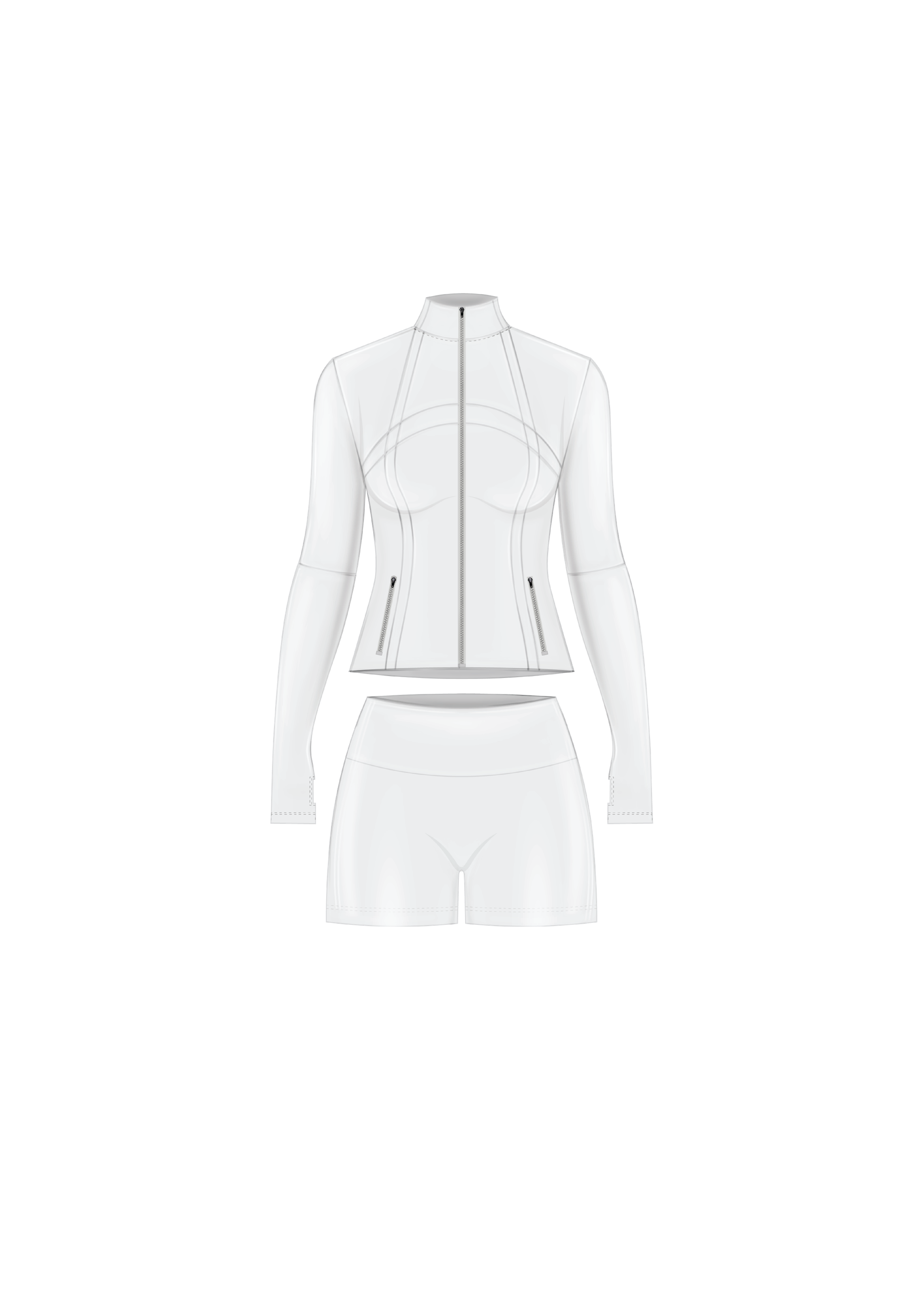 Shape Jacket & Shorts Set (Light Grey & Silver Zipper)