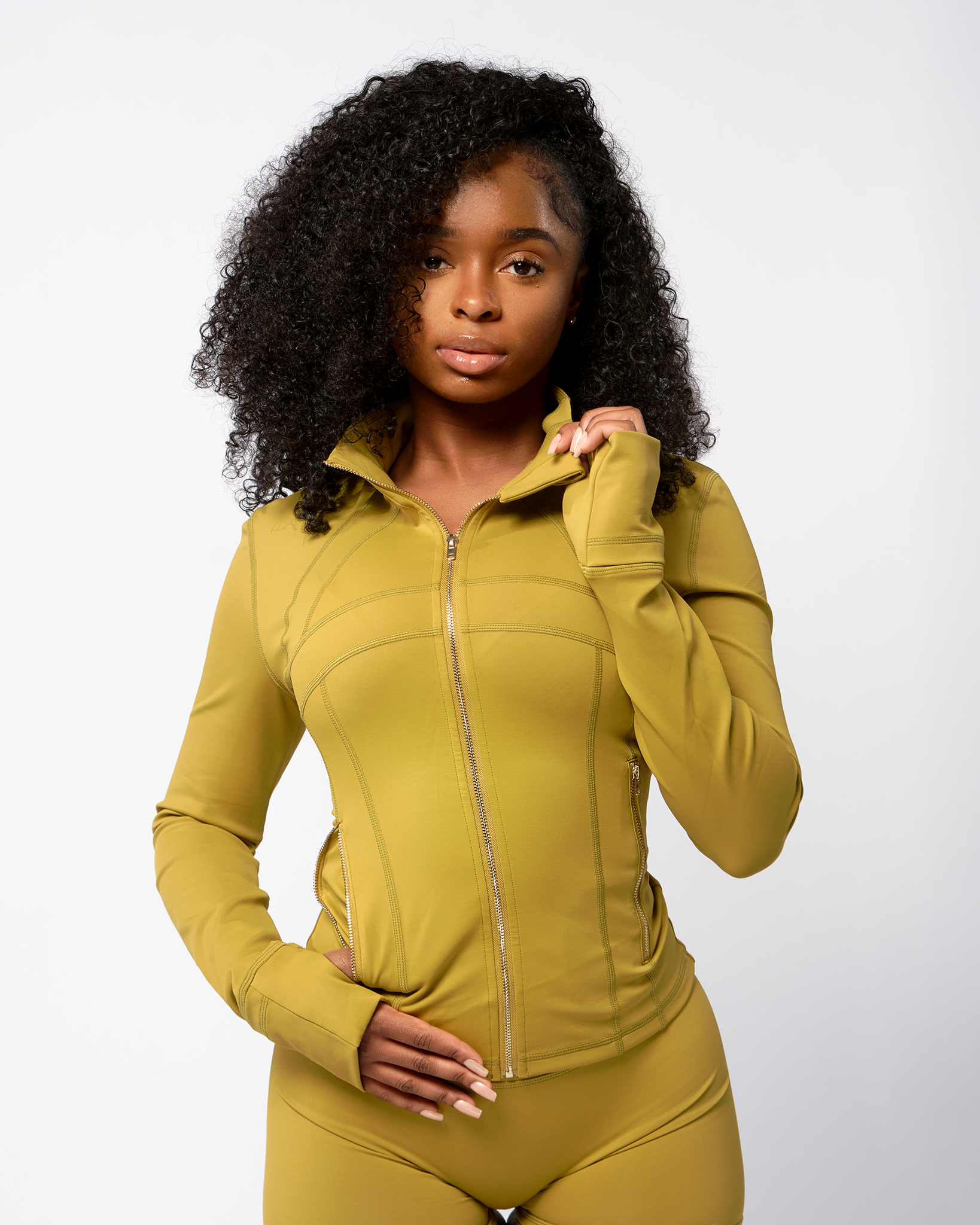 Shape Jacket & Shorts Set (Avocado Green & Gold Zipper)