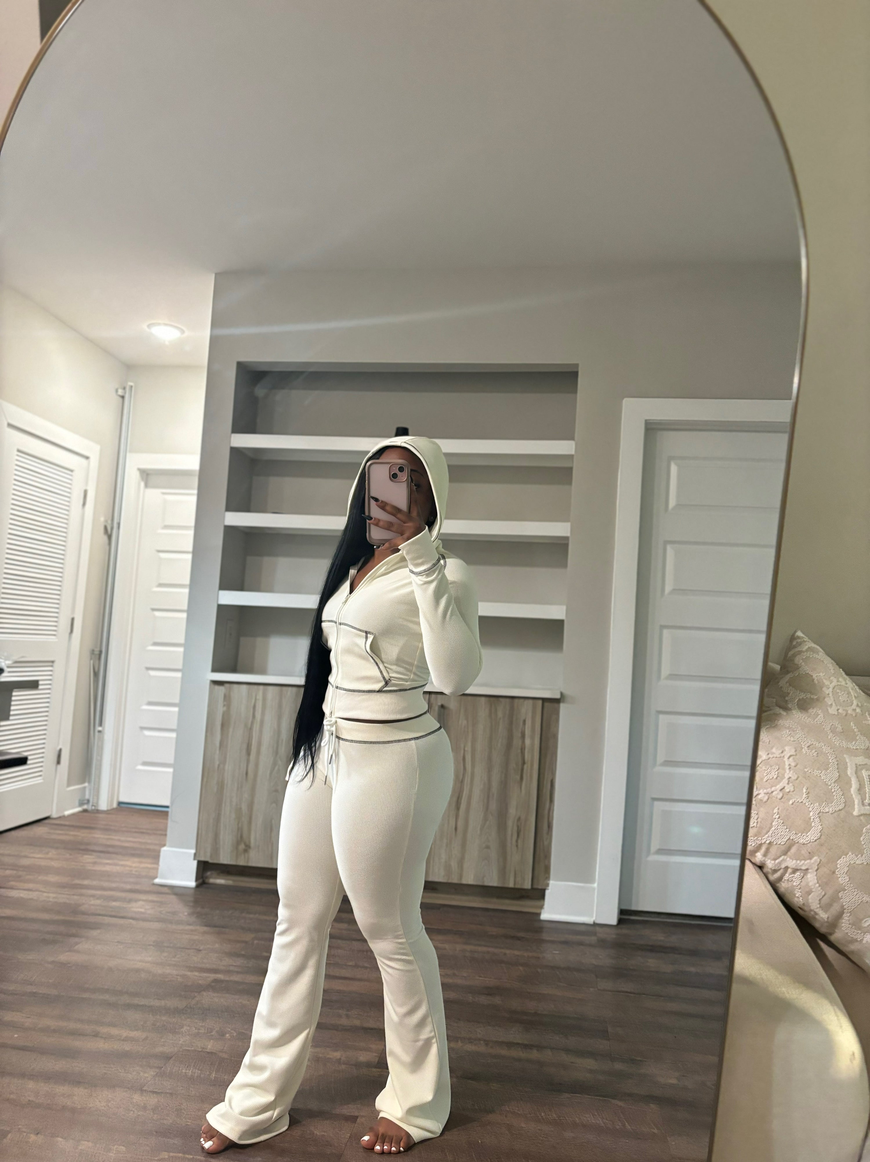 Waffle Knit Sweatsuit (Cream&Black)