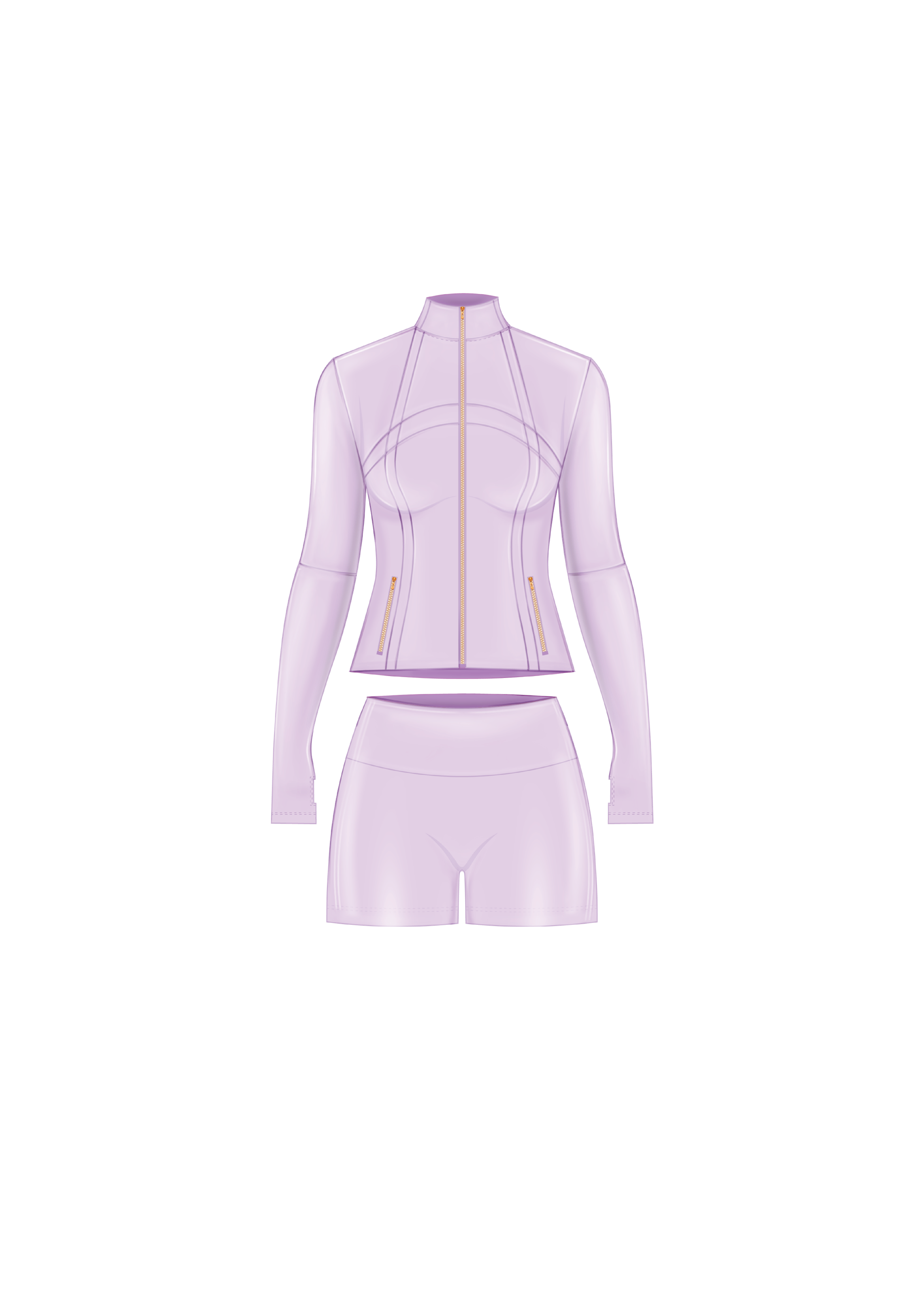 Shape Jacket & Shorts Set (Lavender & Gold Zipper)