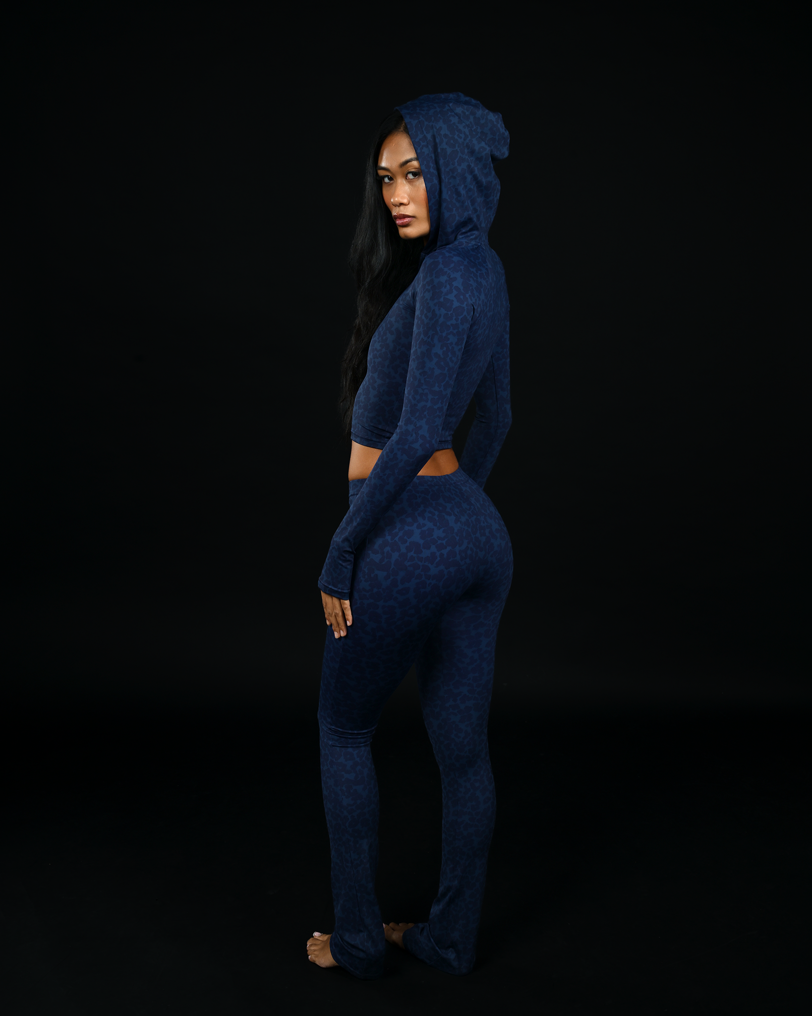 Navy Blue Leopard Hoodie Set (FINAL SALE)