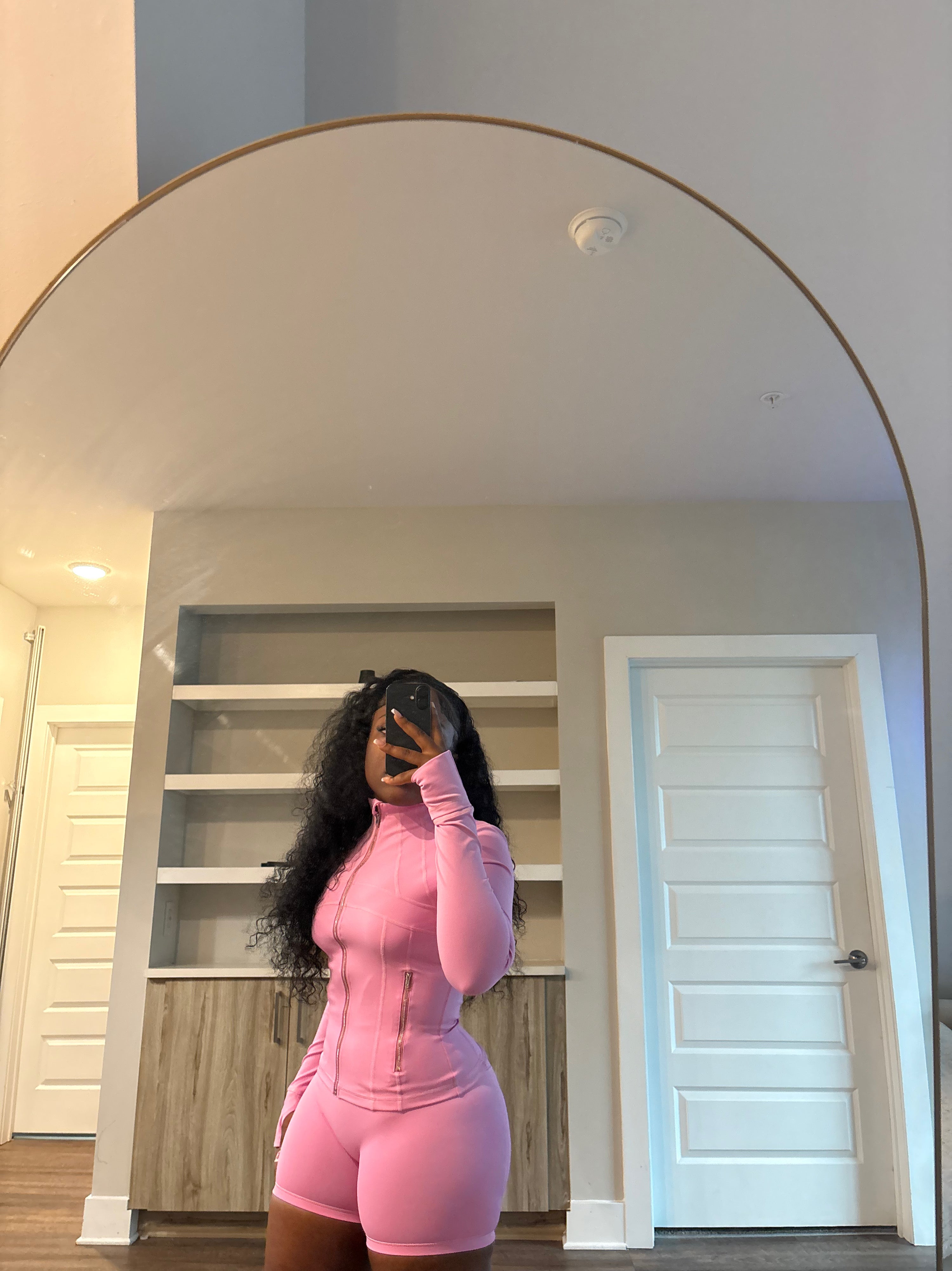 Shape Jacket & Shorts Set (Bubble Gum Pink& Silver Zipper)