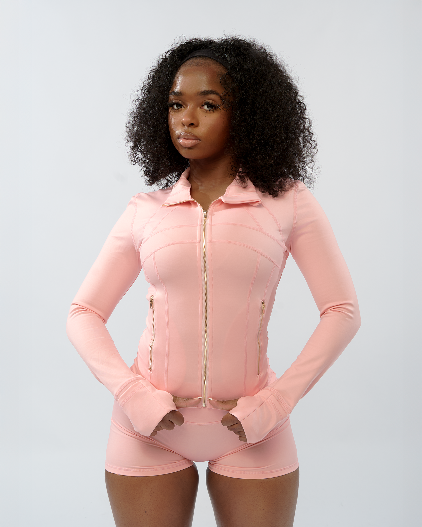 Shape Jacket & Shorts Set (Peach Pink& Gold Zipper)
