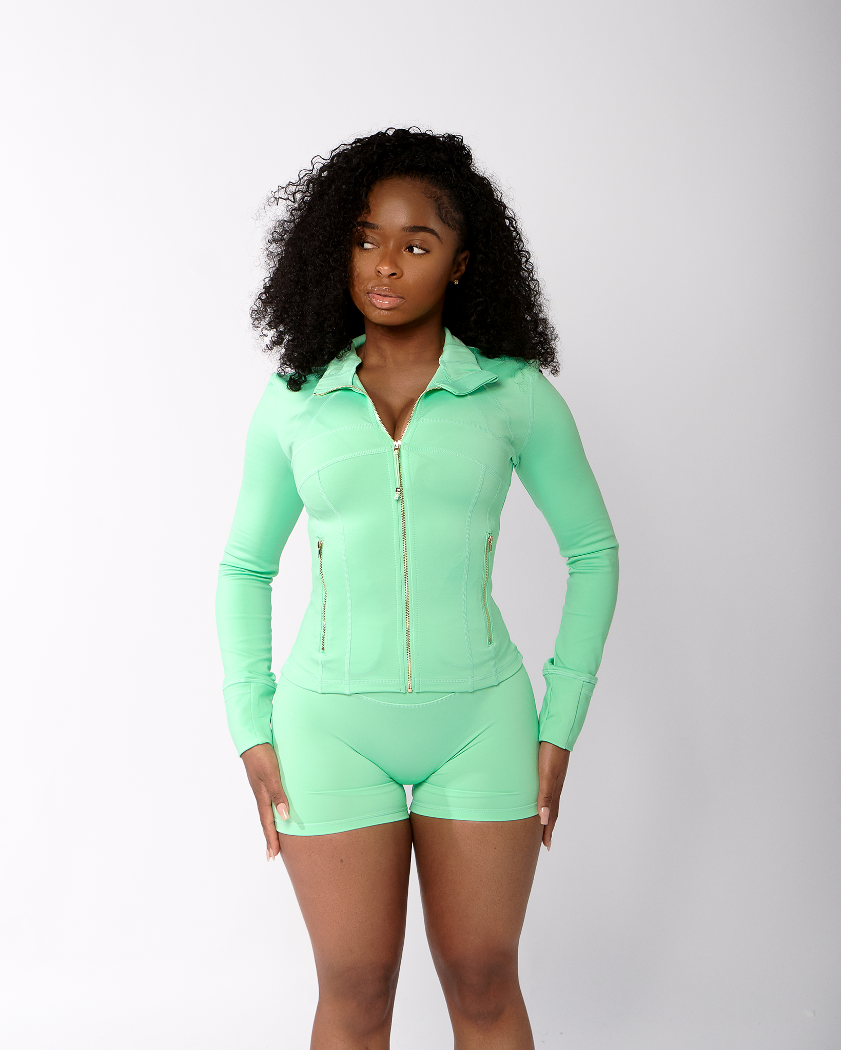 Shape Jacket & Shorts Set (Mint& Gold Zipper)