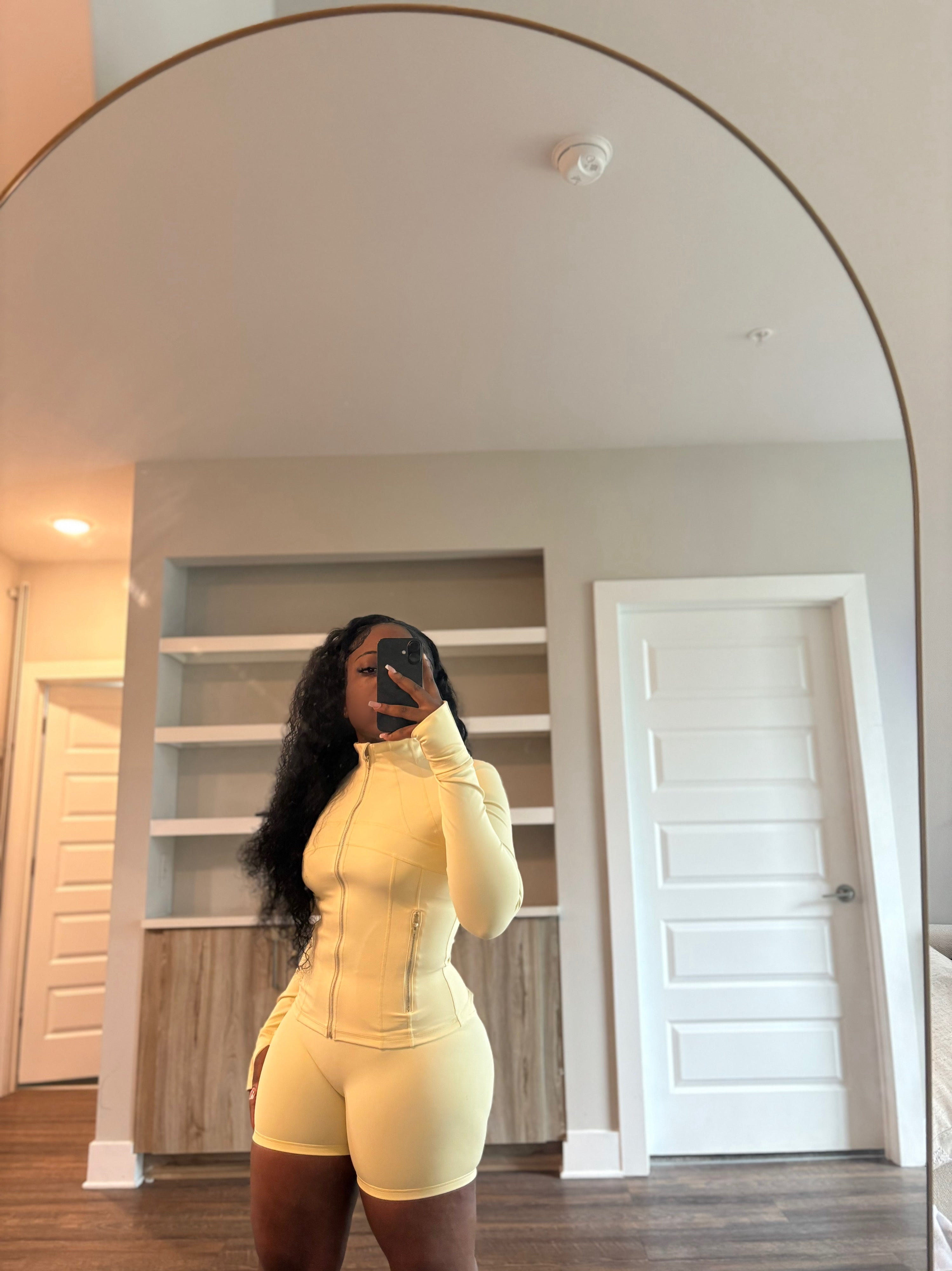 Shape Jacket & Shorts Set (Yellow& Gold Zipper)