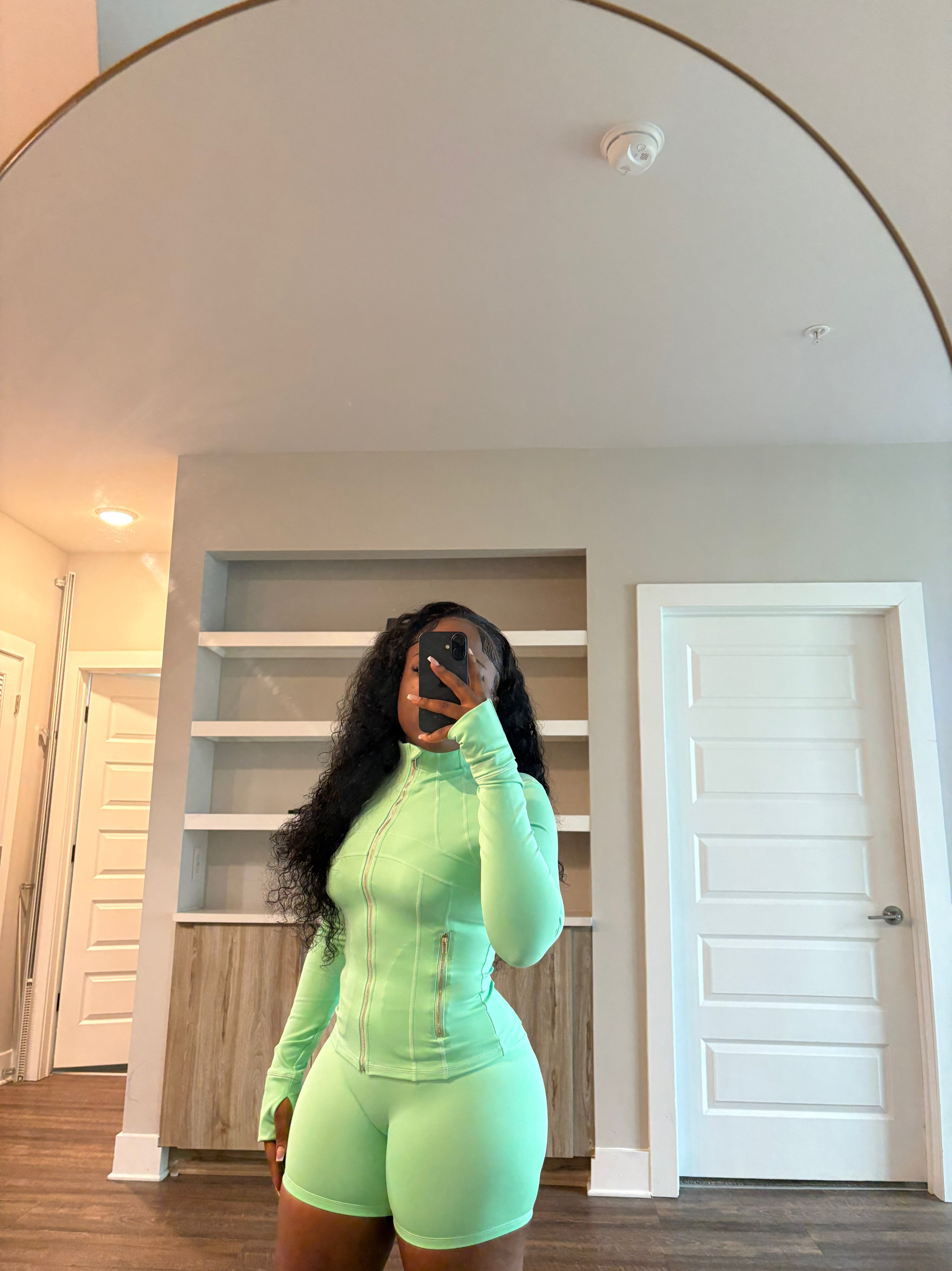 Shape Jacket & Shorts Set (Key Lime Green& Gold Zipper)