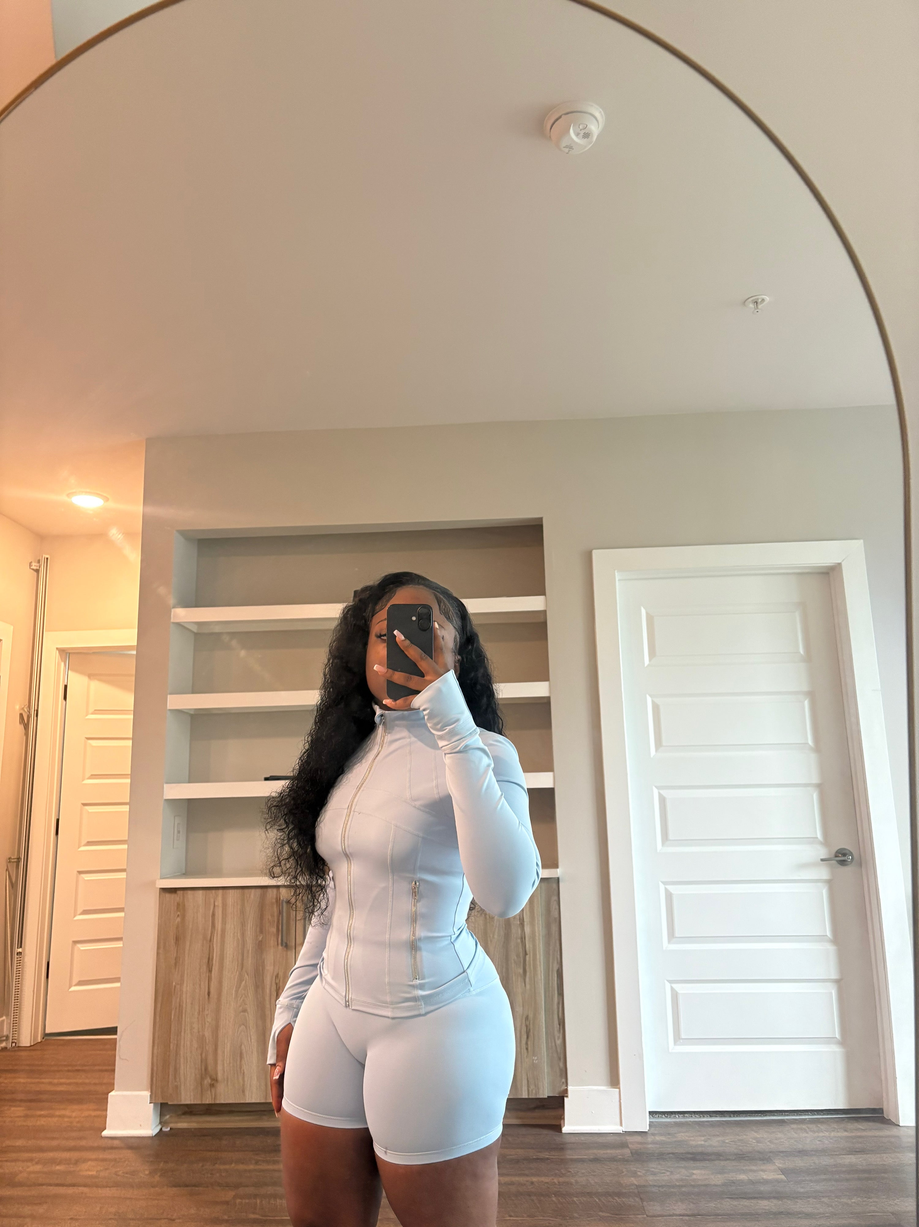 Shape Jacket & Shorts Set (Baby Blue& Silver Zipper)