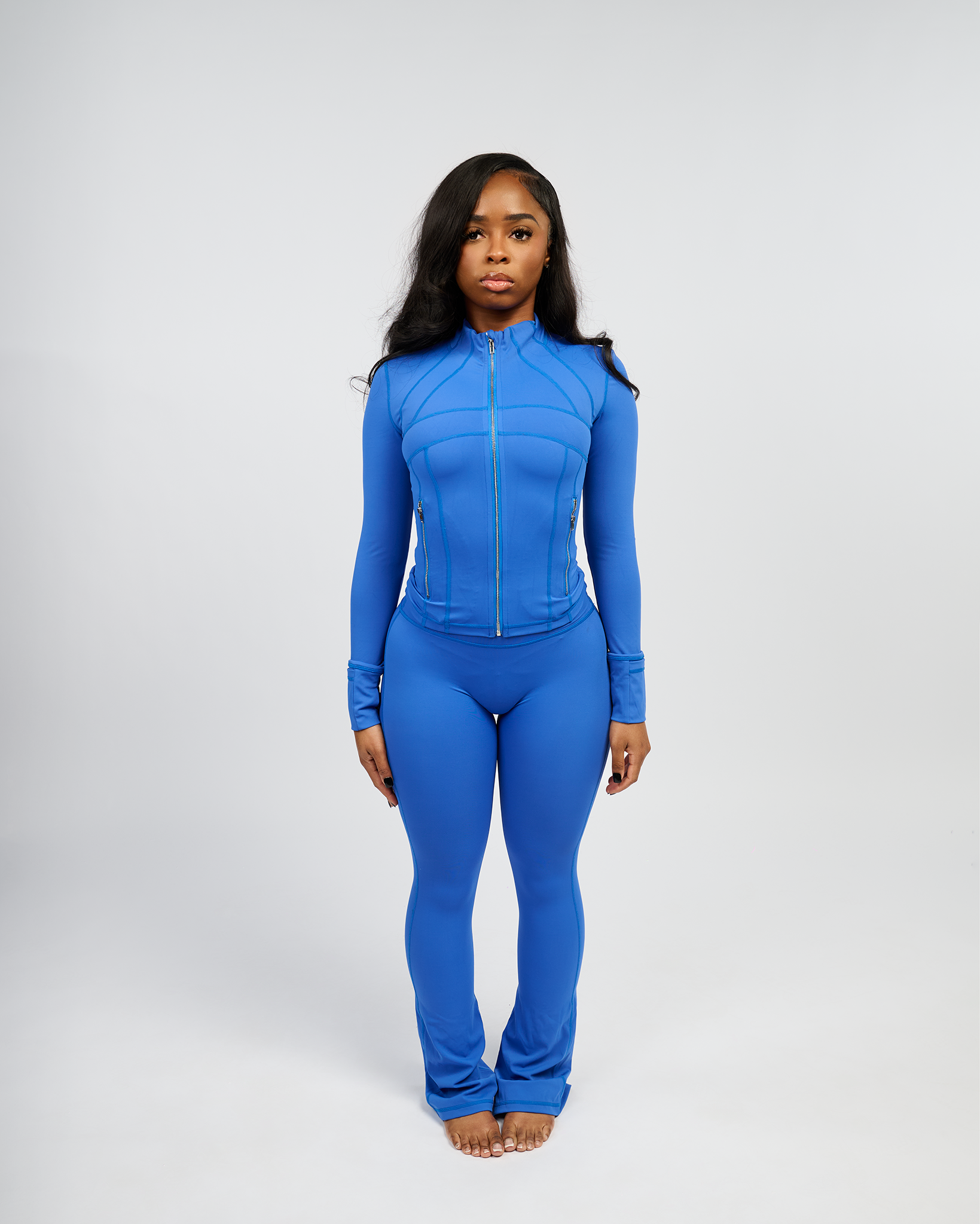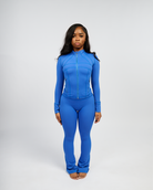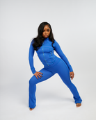 Shape Jacket & Flare Pants Set (Cobalt Blue & Gold Zipper)(FINAL SALE)