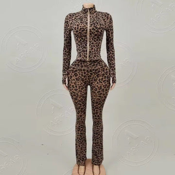 Shape Jacket & Flare Pants(Leopard & Gold Zipper)